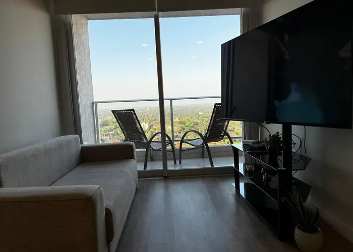 Διαθέτοντας ιδιωτικό κήπο, το διαμέρισμα Piso 25, Lujo En Altura, Forum Molas Διαμέρισμα προσφέρει διαμονή 3 χλμ. από Βοτανικός και Ζωολογικός Κήπος της Ασουνσιόν. Μπορείτε να φτάσετε σε Στάδιο Manuel Ferreira σε 10 λεπτά, ενώ το αεροδρόμιο ΔιεθΝές Silvio Pettirossi απέχει 10 χλμ.
